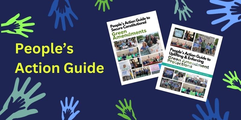 Download a copy of the People’s Action Guide—a sort of one-stop-shop toolkit that details what a Green Amendment is, how it works, and what steps you can take to advance a Green Amendment movement in your state. It’s a helpful reference that makes Green Amendment knowledge accessible to everyone.