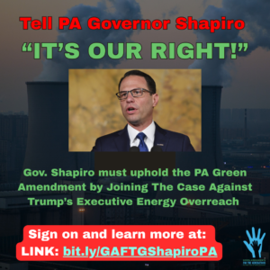 Sign the letter demanding PA Governor Shapiro stand up to the Trump administration’s energy overreach and uphold obligations under the Pennsylvania Green Amendment.