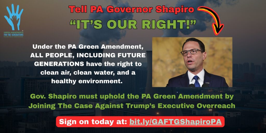 SIGN THE LETTER DEMANDING PA GOVERNOR SHAPIRO STAND UP TO THE TRUMP ADMINISTRATION’S ENERGY OVERREACH AND UPHOLD OBLIGATIONS UNDER THE PENNSYLVANIA GREEN AMENDMENT
