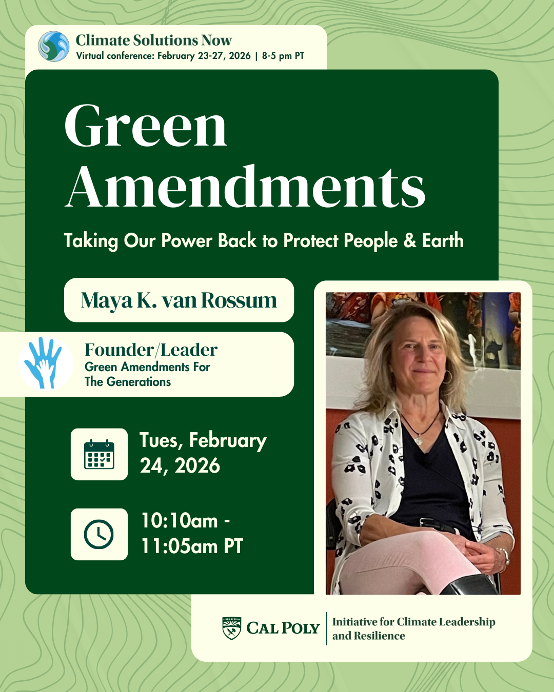Climate Solutions Now is presented by ICLR, the Initiative for Climate Leadership and Resilience at Cal Poly.