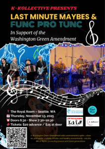 Attend this amazing benefit organized by the Washington Coalition in support of the WA Green Amendment effort! Enjoy some amazing local musicians all while uplifting the effort to secure constitutional environmental rights in the great state of Washington.
