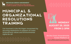 Come get involved in the Michigan Green Amendment movement as we teach you how to secure resolutions in support of Green Amendment values and environmental rights for all! In this training, we will: