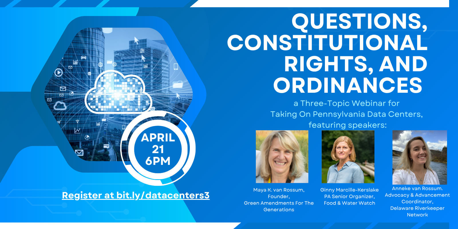 Not from PA? But facing a data center in your state? This webinar will be providing info that can be broadly applied, including helping you to understand how a well-crafted Green Amendment can make a difference.
