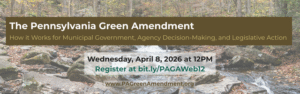 Join Green Amendments For The Generations for an in-depth webinar all about the Pennsylvania Green Amendment– its history, language, and applications at the state and local government levels. Experts will speak specifically to Green Amendment obligations and opportunities for municipal government officials, state regulatory agencies, and state legislators, followed by a Question and Answer session. Resources will be made available during and after the webinar. REGISTER HERE!